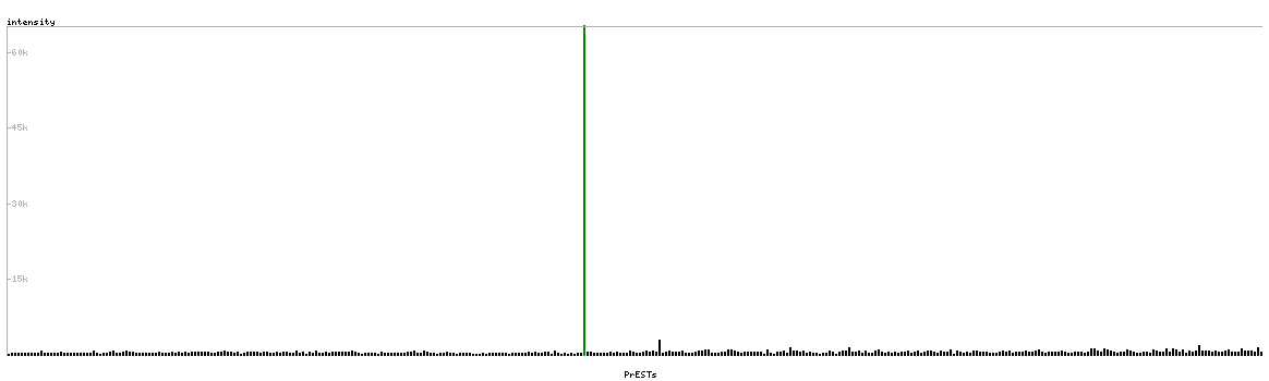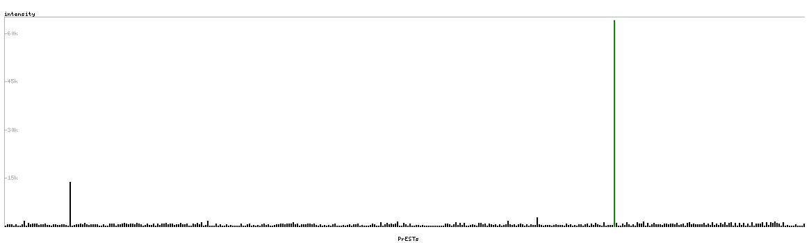 At the top of the view, the position of the antigen (identified by the corresponding HPA identifier) is shown as a green bar. A yellow triangle on the bar indicates a <100% sequence identity to the protein target.