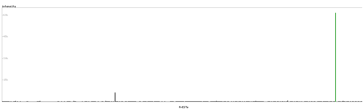 At the top of the view, the position of the antigen (identified by the corresponding HPA identifier) is shown as a green bar. A yellow triangle on the bar indicates a <100% sequence identity to the protein target.