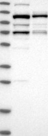A Western blot analysis is performed on a panel of human tissues and cell lines to evaluate antibody specificity. For antibodies with unreliable result a revalidation using an over-expression lysate is performed.