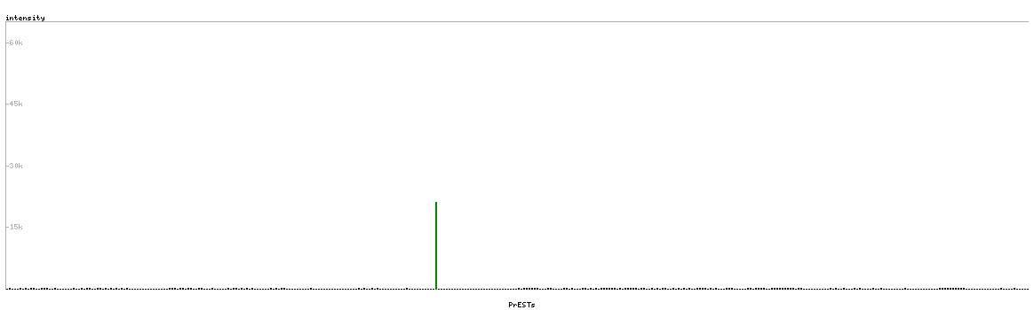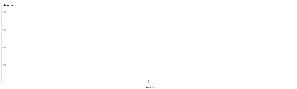 At the top of the view, the position of the antigen (identified by the corresponding HPA identifier) is shown as a green bar. A yellow triangle on the bar indicates a <100% sequence identity to the protein target.