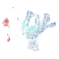 RNA expression in blood on a single cell level from two datasets: - Single cell data includes scRNA-seq data from clusters of various peripheral blood mononuclear cell types (PBMC) and endothelial cells. A barchart shows pTPM levels in each cluster and to the left, a UMAP plot visualizes the RNA expression profile. Both are clickable and redirect to more Cell Type Atlas data. - Flow sorting data includes RNA-seq data (pTPM) from blood cell types and total peripheral blood mononuclear cells (PBMC) that have been separated into subpopulations by flow sorting. The plot is clickable and redirects to more Blood Atlas data. Color-coding is based on cell type groups, each consisting of cell types with functional features in common. Please note that the same cell type may be found in several clusters. Color-coding is based on cell type groups, each consisting of cell types with functional features in common. Please note that the same cell type may be found in several clusters.