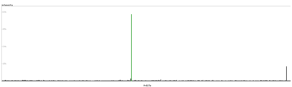 At the top of the view, the position of the antigen (identified by the corresponding HPA identifier) is shown as a green bar. A yellow triangle on the bar indicates a <100% sequence identity to the protein target.