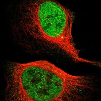 Immunofluorescent staining of human cell line U-2 OS shows localization to nucleoplasm.