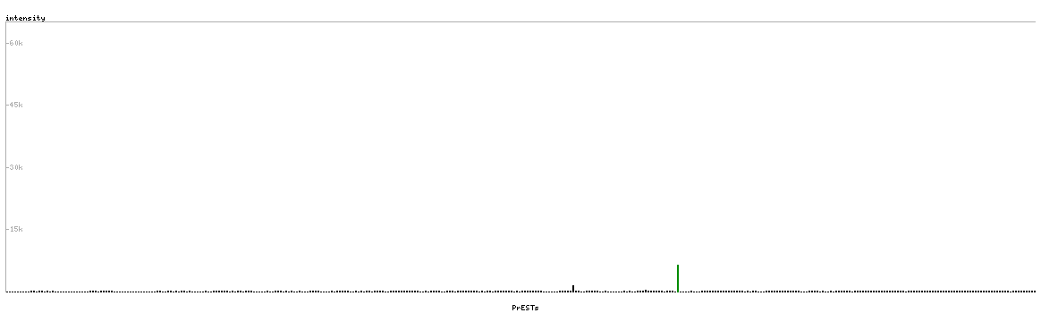 At the top of the view, the position of the antigen (identified by the corresponding HPA identifier) is shown as a green bar. A yellow triangle on the bar indicates a <100% sequence identity to the protein target.