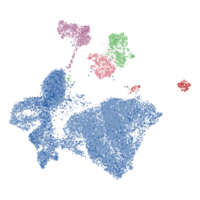 RNA expression in blood on a single cell level from two datasets: - Single cell data includes scRNA-seq data from clusters of various peripheral blood mononuclear cell types (PBMC) and endothelial cells. A barchart shows pTPM levels in each cluster and to the left, a UMAP plot visualizes the RNA expression profile. Both are clickable and redirect to more Cell Type Atlas data. - Flow sorting data includes RNA-seq data (pTPM) from blood cell types and total peripheral blood mononuclear cells (PBMC) that have been separated into subpopulations by flow sorting. The plot is clickable and redirects to more Blood Atlas data. Color-coding is based on cell type groups, each consisting of cell types with functional features in common. Please note that the same cell type may be found in several clusters. Color-coding is based on cell type groups, each consisting of cell types with functional features in common. Please note that the same cell type may be found in several clusters.