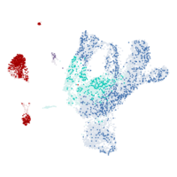 RNA expression in blood on a single cell level from two datasets: - Single cell data includes scRNA-seq data from clusters of various peripheral blood mononuclear cell types (PBMC) and endothelial cells. A barchart shows pTPM levels in each cluster and to the left, a UMAP plot visualizes the RNA expression profile. Both are clickable and redirect to more Cell Type Atlas data. - Flow sorting data includes RNA-seq data (pTPM) from blood cell types and total peripheral blood mononuclear cells (PBMC) that have been separated into subpopulations by flow sorting. The plot is clickable and redirects to more Blood Atlas data. Color-coding is based on cell type groups, each consisting of cell types with functional features in common. Please note that the same cell type may be found in several clusters. Color-coding is based on cell type groups, each consisting of cell types with functional features in common. Please note that the same cell type may be found in several clusters.