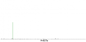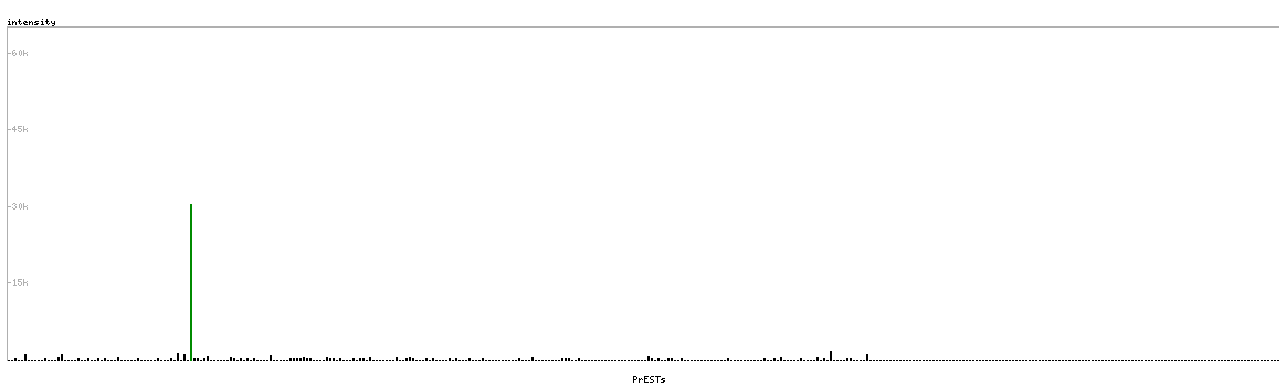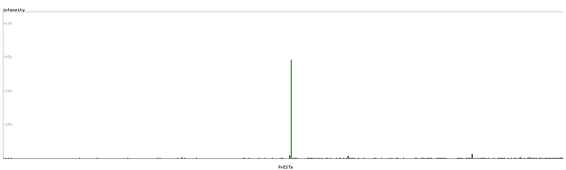 At the top of the view, the position of the antigen (identified by the corresponding HPA identifier) is shown as a green bar. A yellow triangle on the bar indicates a <100% sequence identity to the protein target.
