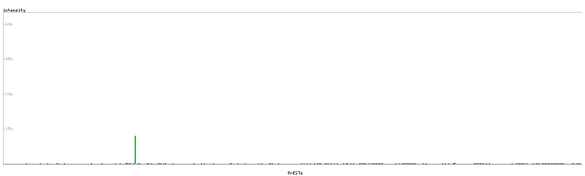At the top of the view, the position of the antigen (identified by the corresponding HPA identifier) is shown as a green bar. A yellow triangle on the bar indicates a <100% sequence identity to the protein target.
