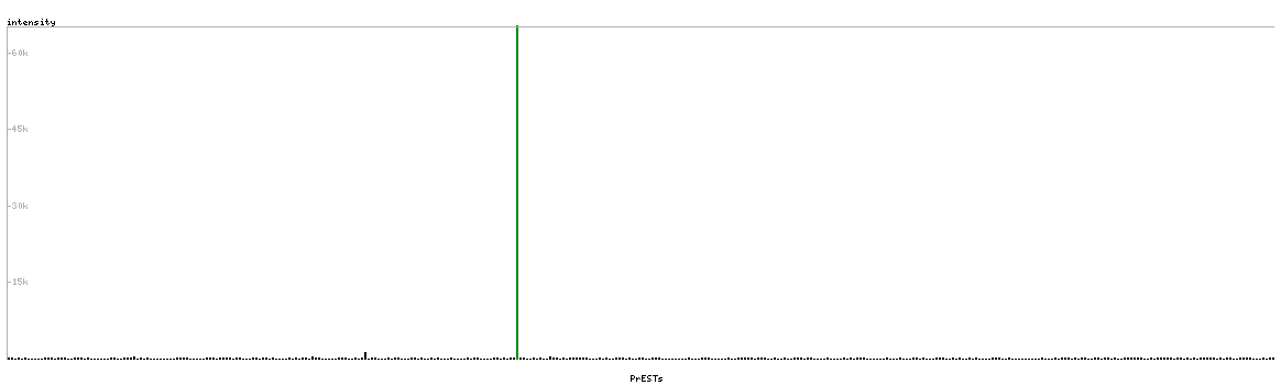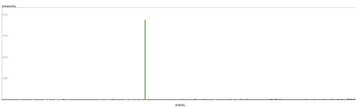 At the top of the view, the position of the antigen (identified by the corresponding HPA identifier) is shown as a green bar. A yellow triangle on the bar indicates a <100% sequence identity to the protein target.