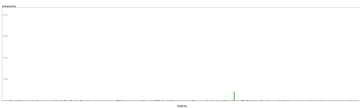 At the top of the view, the position of the antigen (identified by the corresponding HPA identifier) is shown as a green bar. A yellow triangle on the bar indicates a <100% sequence identity to the protein target.