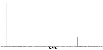 At the top of the view, the position of the antigen (identified by the corresponding HPA identifier) is shown as a green bar. A yellow triangle on the bar indicates a <100% sequence identity to the protein target.