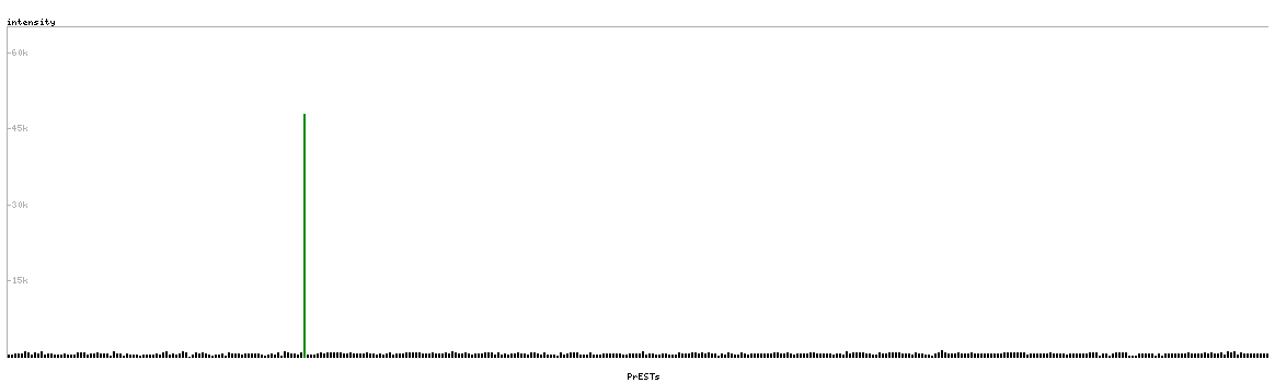 At the top of the view, the position of the antigen (identified by the corresponding HPA identifier) is shown as a green bar. A yellow triangle on the bar indicates a <100% sequence identity to the protein target.