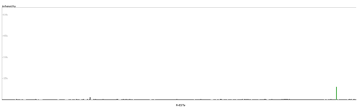 At the top of the view, the position of the antigen (identified by the corresponding HPA identifier) is shown as a green bar. A yellow triangle on the bar indicates a <100% sequence identity to the protein target.