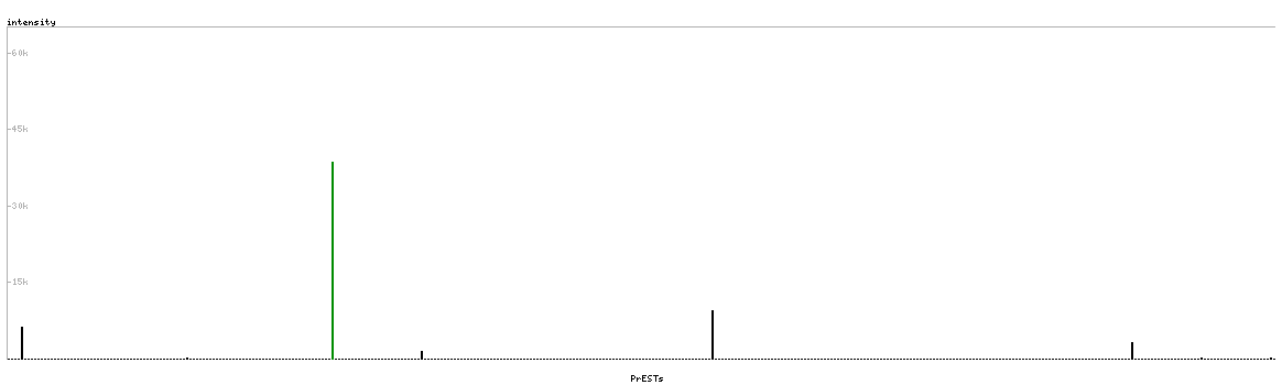 At the top of the view, the position of the antigen (identified by the corresponding HPA identifier) is shown as a green bar. A yellow triangle on the bar indicates a <100% sequence identity to the protein target.