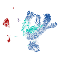 RNA expression in blood on a single cell level from two datasets: - Single cell data includes scRNA-seq data from clusters of various peripheral blood mononuclear cell types (PBMC) and endothelial cells. A barchart shows pTPM levels in each cluster and to the left, a UMAP plot visualizes the RNA expression profile. Both are clickable and redirect to more Cell Type Atlas data. - Flow sorting data includes RNA-seq data (pTPM) from blood cell types and total peripheral blood mononuclear cells (PBMC) that have been separated into subpopulations by flow sorting. The plot is clickable and redirects to more Blood Atlas data. Color-coding is based on cell type groups, each consisting of cell types with functional features in common. Please note that the same cell type may be found in several clusters. Color-coding is based on cell type groups, each consisting of cell types with functional features in common. Please note that the same cell type may be found in several clusters.